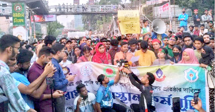 বুধবার (৩০ আক্টোবর) বিকেল ৫টায় রাজধানীর সায়েন্সল্যাব মোড়ে সংবাদ সম্মেলন করে নতুন এ কর্মসূচির ঘোষণা দেন শিক্ষার্থীরা। শিক্ষার্থীদের পক্ষে সংবাদ সম্মেলনে লিখিত বক্তব্য পড়ে শোনান কবি নজরুল কলেজের শিক্ষার্থী আজম খান।